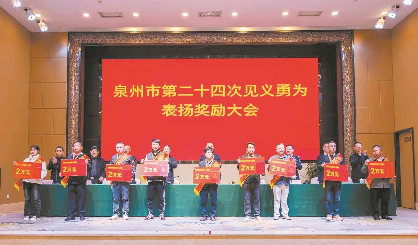 12月16日,泉州市第二十四次见义勇为表扬奖励大会召开,27位见义勇为先进个人及15个先进单位、优秀志愿者集体获得表扬奖励。