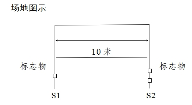 注意事项:测试时有以下任一情况,不计取成绩:出发时抢跑;折返时脚踩s1或s2线;折返时未推倒木块。