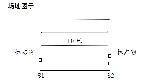 注意事项:测试时有以下任一情况,不计取成绩:出发时抢跑;折返时脚踩s1或s2线;折返时未推倒木块。